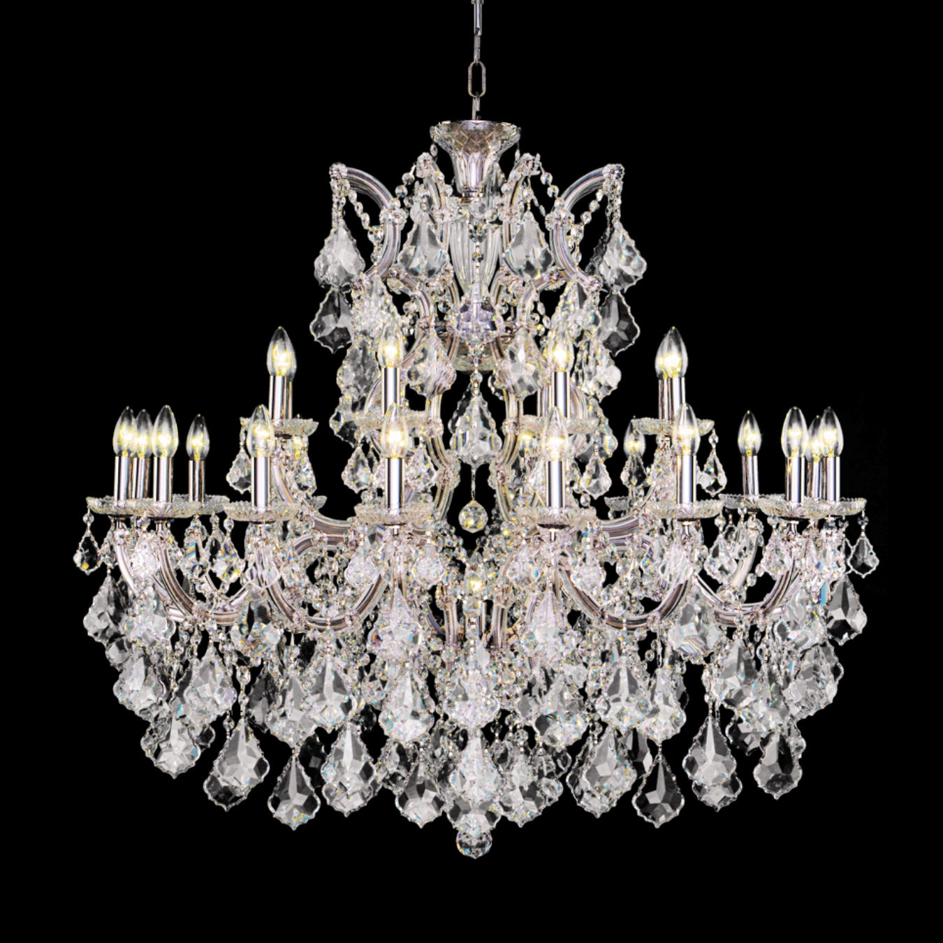 Maria Theresa No.47 blends imperial grandeur with meticulous craftsmanship. With 22 shimmering lights and pendeloque-cut Almaza™ crystals in golden shadow finish, it casts a warm, regal glow across any interior. A 24K gold-plated frame completes this timeless statement of elegance.