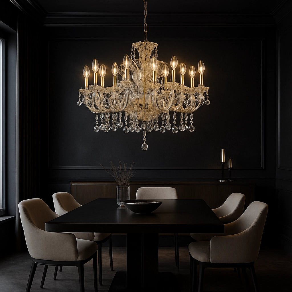The Seraphine 16-Light Chandelier is where classic grandeur meets luminous craftsmanship. With sweeping, gold-plated arms and a radiant crown of candle-style lights, its design evokes the elegance of a bygone era.