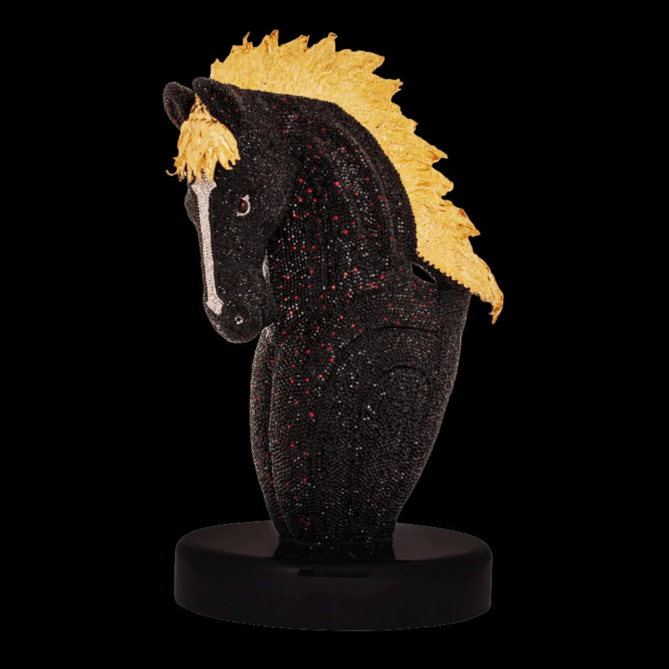 Handcrafted over 30 hours with 20,973 precision-set black Asfour crystals and crowned with a flowing 24-karat gold-plated mane, this sculpture radiates controlled strength and refined power. Its proud stance and sculpted form reflect legacy, elegance, and mystique.