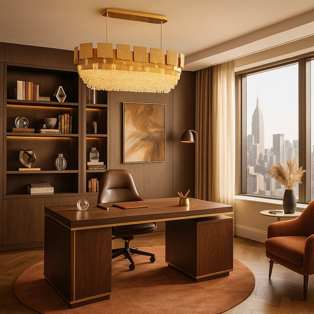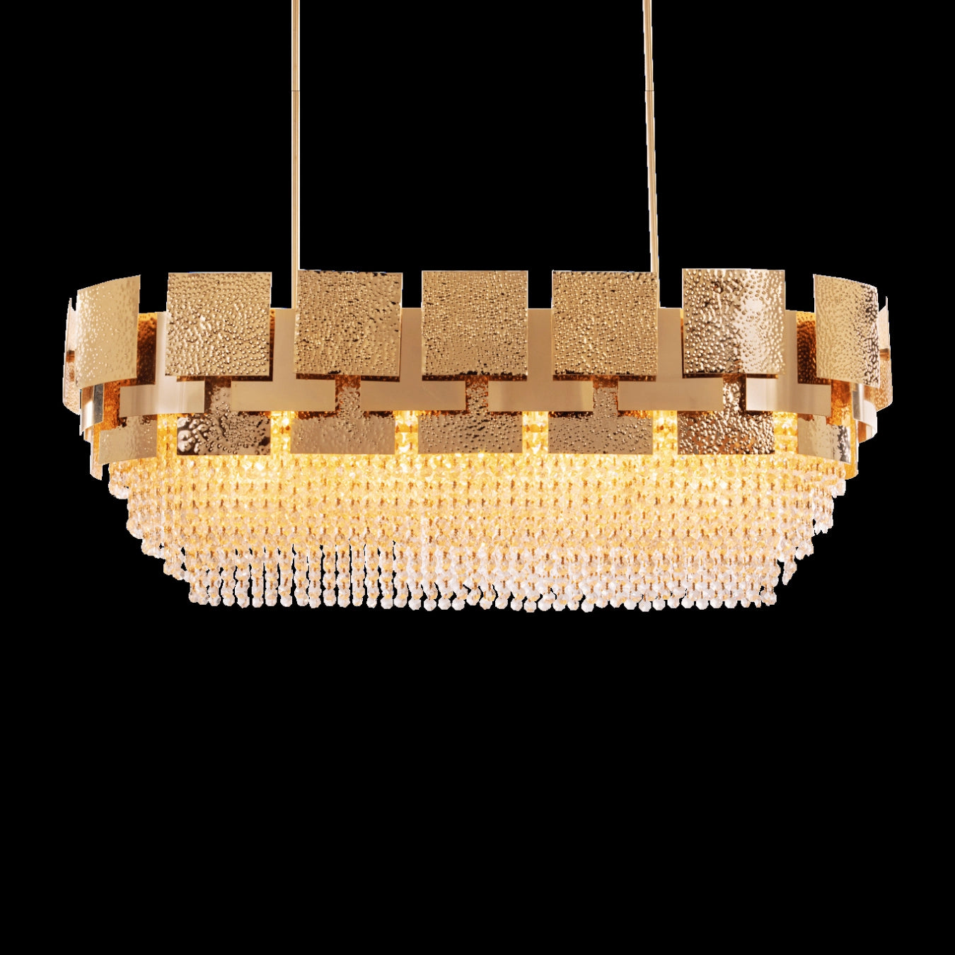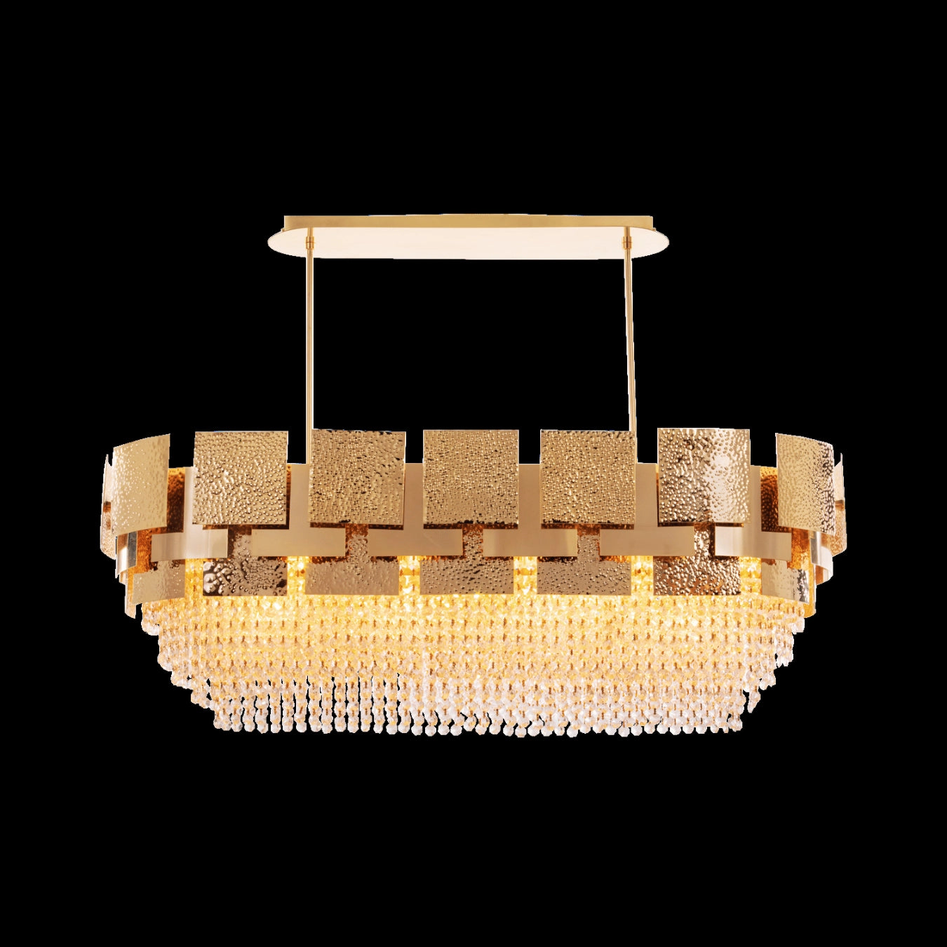 Solstice is a bold reinterpretation of modern elegance. This oval ceiling-mounted chandelier features 8 bulbs and cascades of octagonal Almaza™ crystals that shimmer through its sculptural gold brushed framework. With its open, architectural lines and soft golden shadow glow, Solstice brings a sense of movement and sophistication to contemporary interiors. Designed for upscale spaces seeking artistic illumination without excess height, it’s the perfect balance of structure and sparkle.
