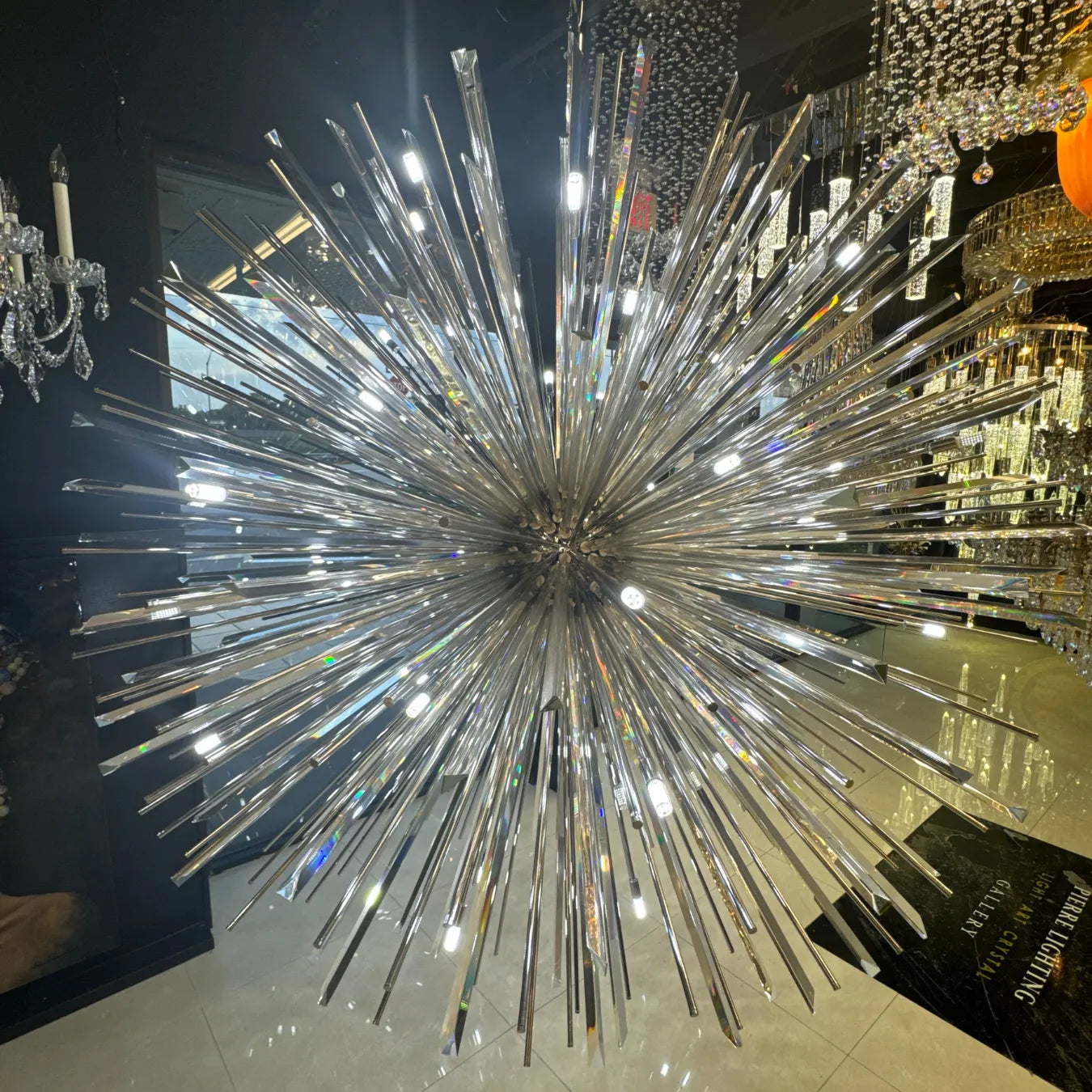 Nova is a one-of-a-kind creation that captures the spark of scientific imagination and cosmic wonder. Dozens of polished rods radiate outward in crystalline symmetry, evoking the brilliance of an exploding star or the elegant structure of an atom frozen in motion. More than a chandelier, Nova is a sculptural testament to light and form, designed for those who seek something original, daring, and unmistakably modern.